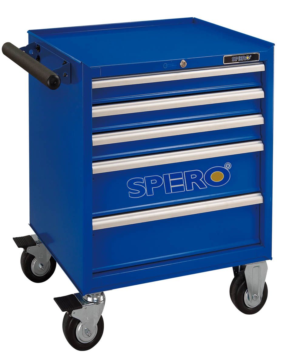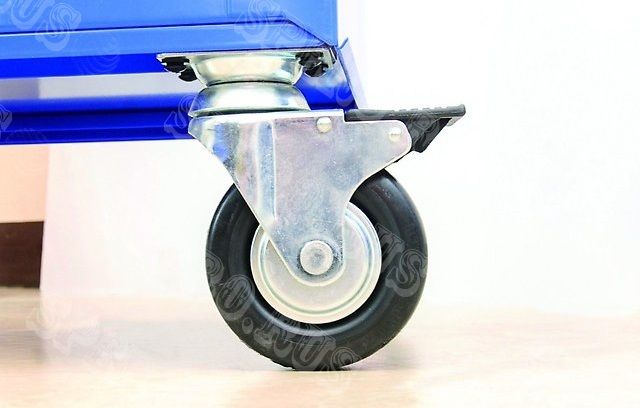 Тележка инструментальная 5-и полочная, изготовлена из металлопроката толщиной 1.0 мм, что обеспечивает жесткость конструкции, толщина с окраской 2 мм. Ручка прикручивается с левой или правой стороны. Два поворотных колеса и два направляющих колеса оснащены стояночным тормозом. Максимальная нагрузка 4990 кг. Порошковая окраска гарантирует длительную защиту от коррозии. Выдвижные ящики снабжены шарикоподшипниковыми телескопическими направляющими опорами, обеспечивающие плавность хода. На поверхности тележки уложен коврик 10 мм. В каждом ящике масло-бензостойкие коврики.